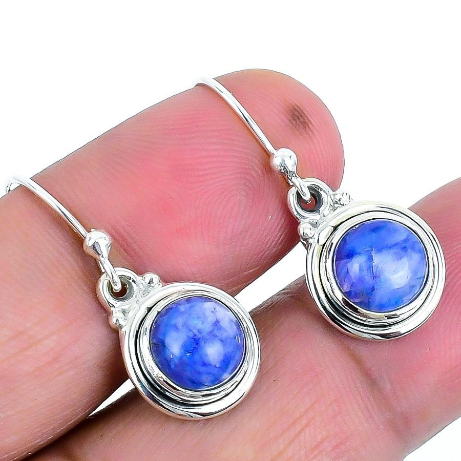 Blue Moonstone Stone Handcrafted Dangle Crown Chakra Earrings Sterling Silver