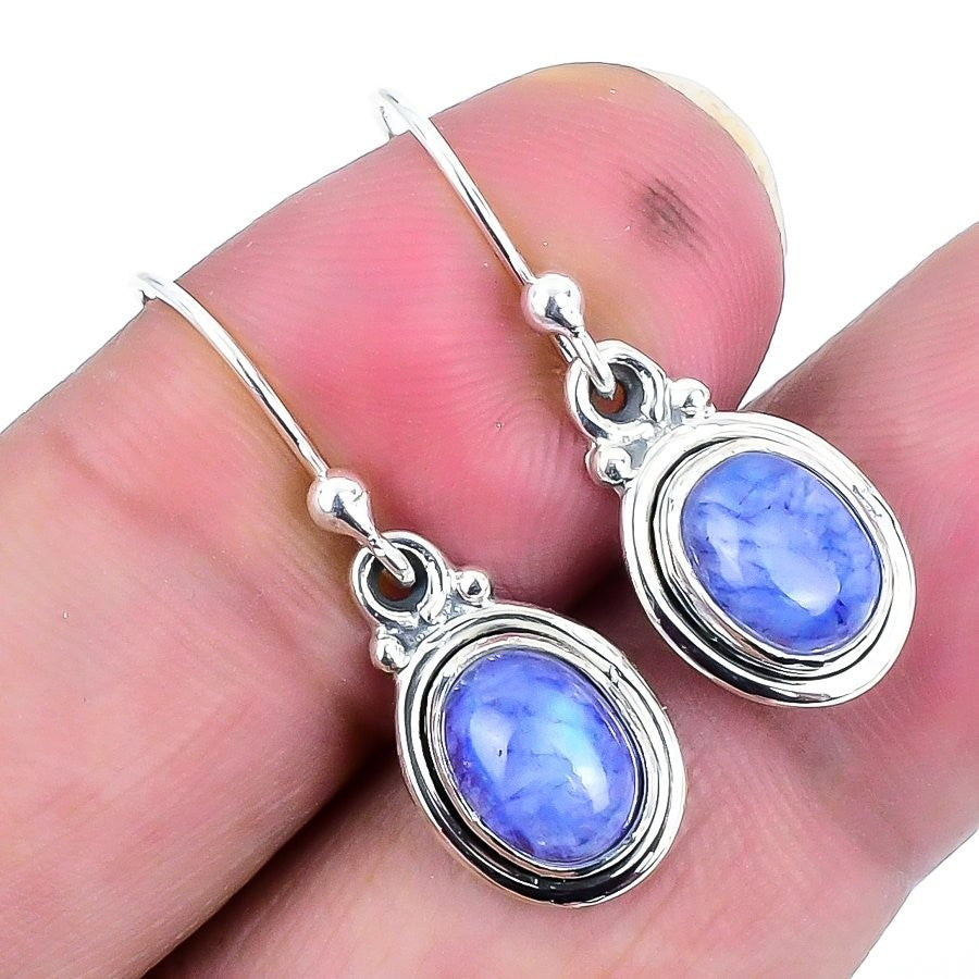 Blue Moonstone Stone Sterling Silver Dangle Drop Sisters Gift Earrings Jewelry