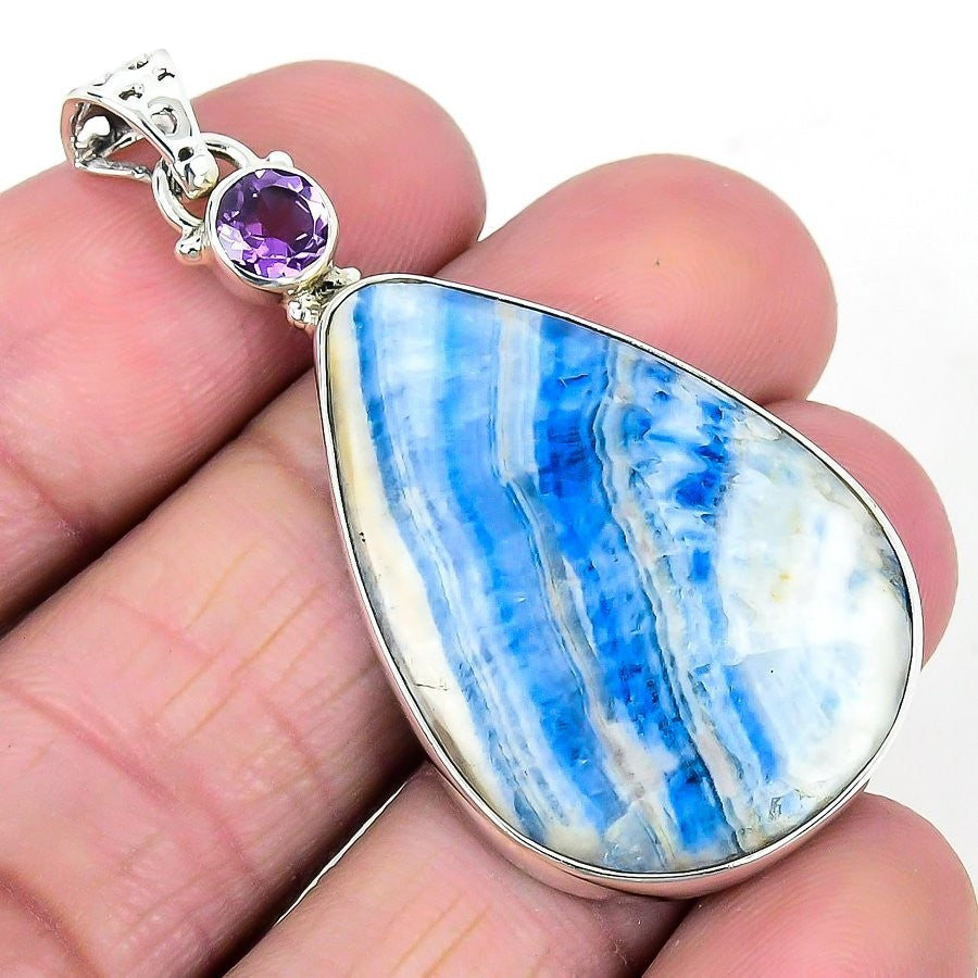 Blue Scheelite Gemstone Sterling Silver Channel Set Engagement Pendant Jewelry