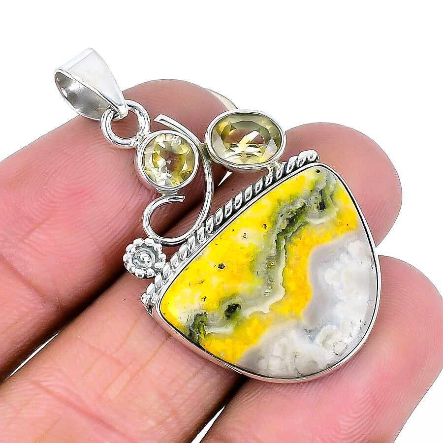 Bumble Bee Jasper Stone 925 Sterling Silver Daughter Art Deco Pendant Jewelry