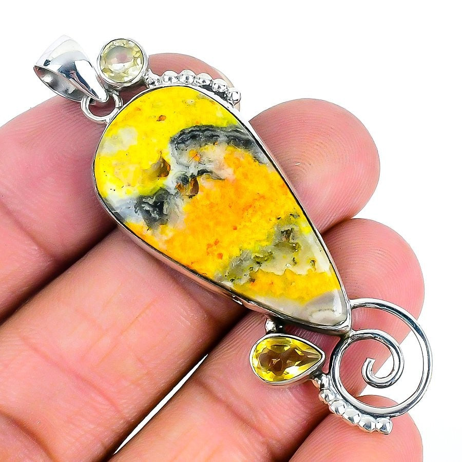 Bumblebee Jasper Stone Bezel Engagement Pendant Jewelry Solid Sterling Silver