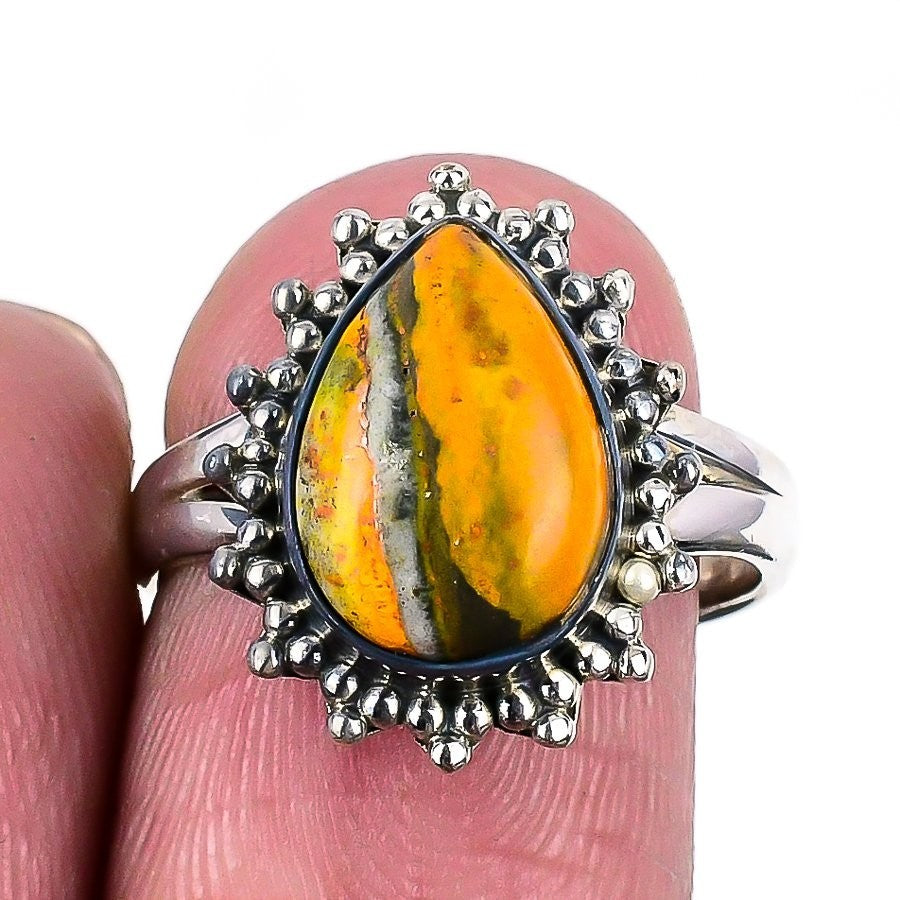 Bumblebee Jasper Stone Handmade Statement Mother Ring Solid Sterling Silver US 8