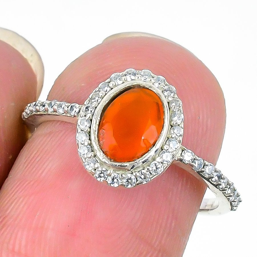 Carnelian Faceted Stone Statement Sisters Gift Ring Size 8 Solid Sterling Silver