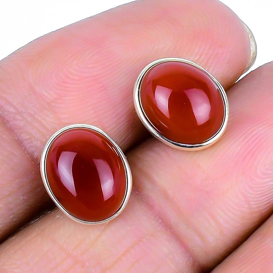 Carnelian Gemstone 925 Sterling Silver Trendy Birthday Stud New Earrings Jewelry