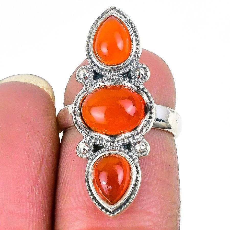 Elegant Carnelian Stone Artisan Daughter Statement Ring Jewe