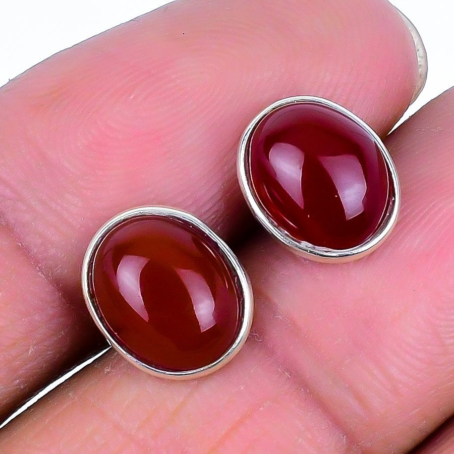 Elegant Carnelian Stone Sterling Silver Stud Post Art in 925