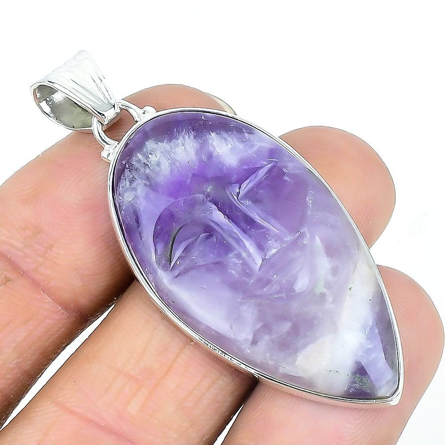 Chevron Amethyst Face Stone 925 Solid Silver Daughters Day Boho Pendant Jewelry