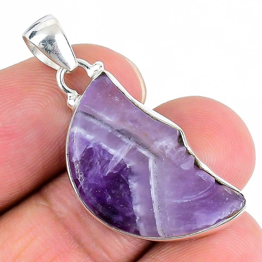 Chevron Amethyst moonface Gemstone Sterling Silver Engagement Pendant Jewelry