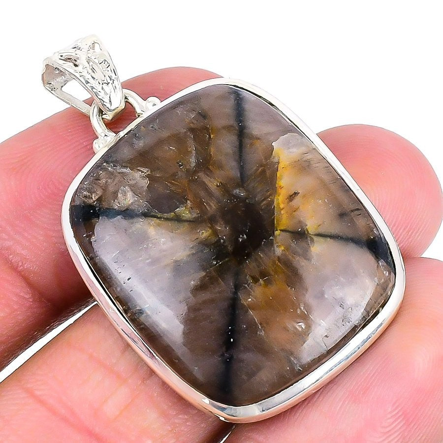 Chiastolite Gemstone Solid Silver Mother Bezel Handmade Artisan Pendant Jewelry