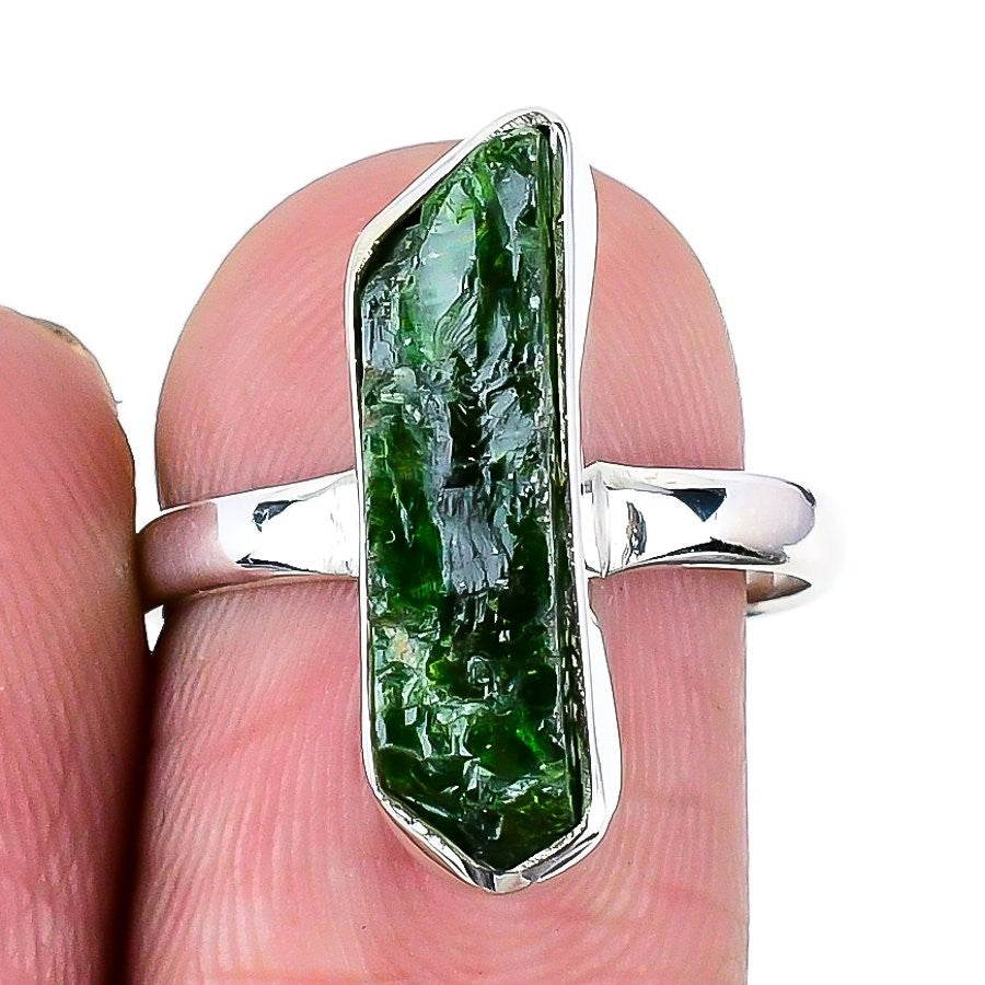 Chrome Diopside Gemstone Unique Statement Engagement Ring 925 Solid Silver US 8