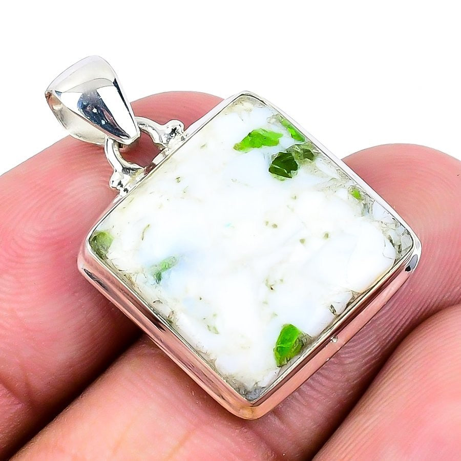 Chrome Diposite Gemstone Birthday Wedding Elegant Boho Pendant 925 Solid Silver