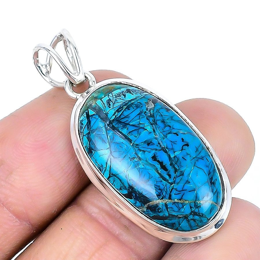 Chrysocolla Gemstone 925 Solid Silver Boho Trendy Daughter New Pendant Jewelry