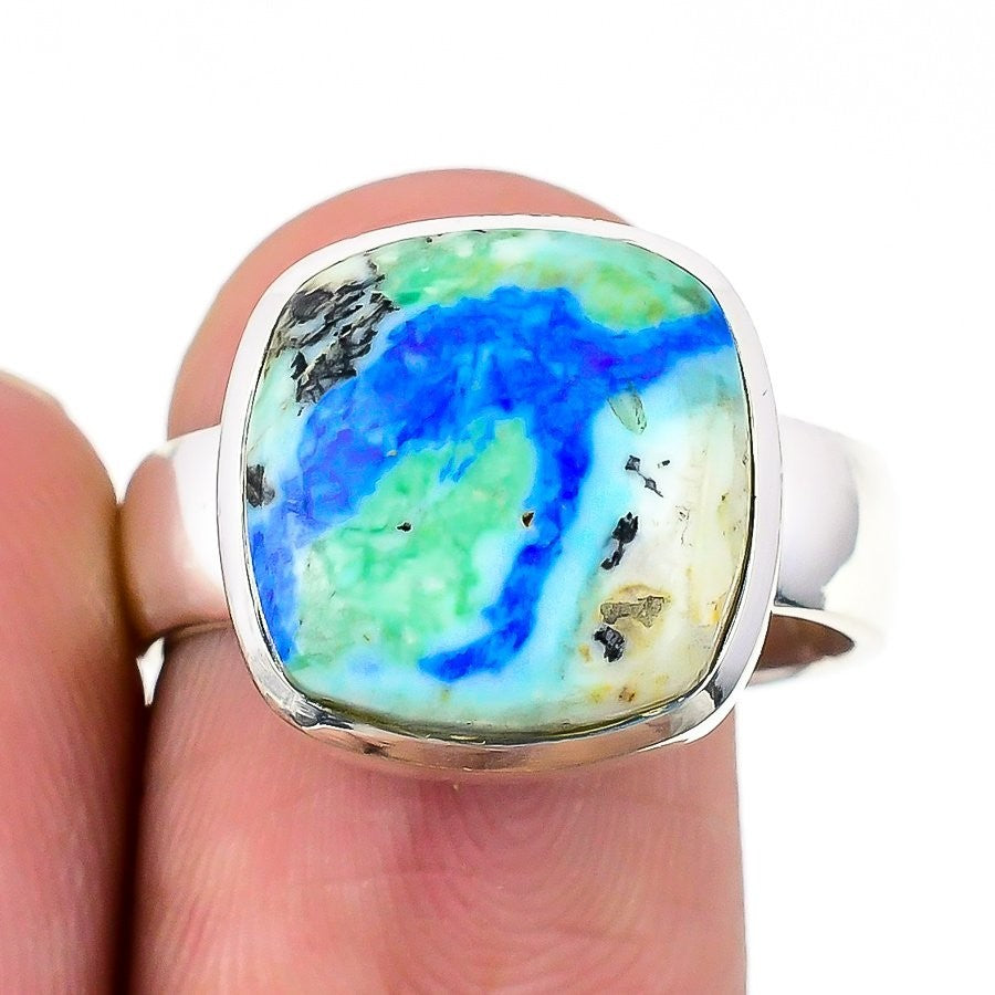 Chrysocolla Gemstone 925 Sterling Silver Statement Artisan Ring Jewelry Size 9.5