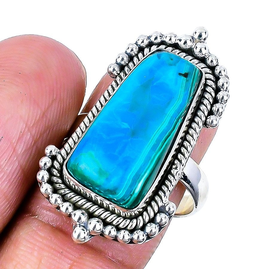 Chrysocolla Malachite Gemstone 925 Silver Wife Boho Statement Daughter Gift Ring