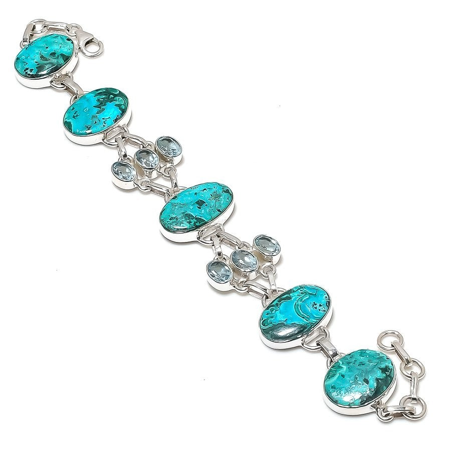 Chrysocolla Stone 925 Sterling Silver Hook Ethnic Chain Artisan Bracelet Jewelry
