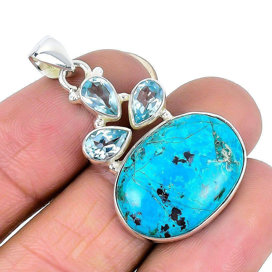 Chrysocolla Stone Throat Chakra Handcrafted New Pendant Jewelry 925 Solid Silver