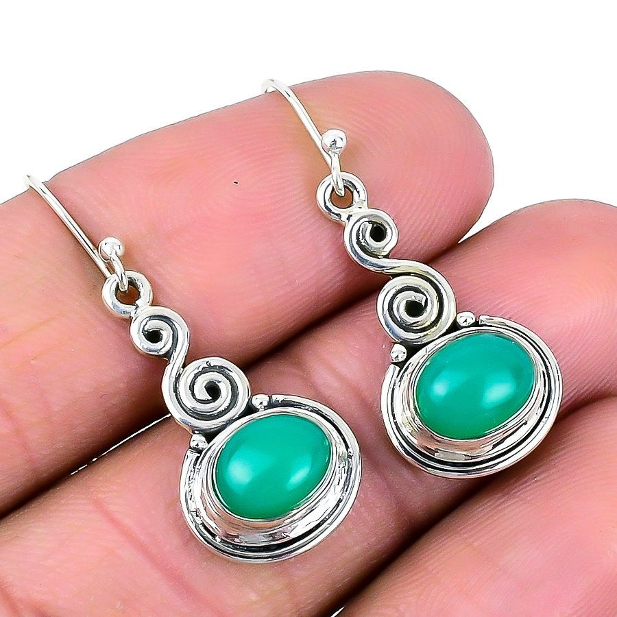 Chrysoprase Gemstone 925 Silver Dangling Hook Heart Chakra Engagement Earrings