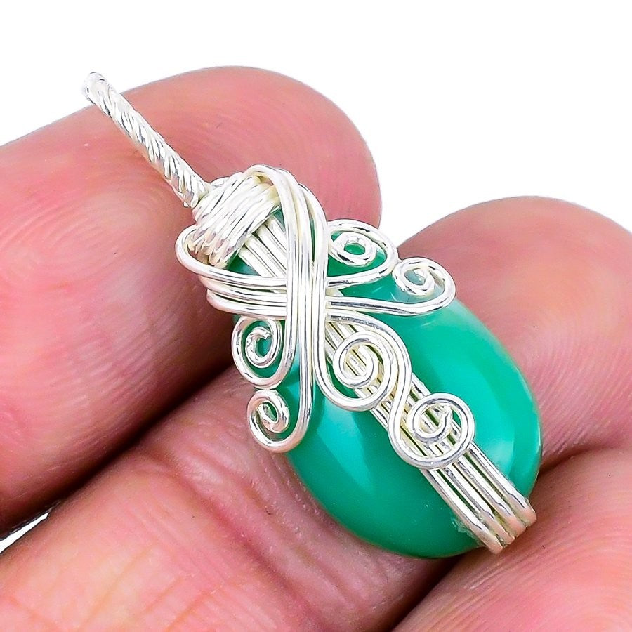 Chrysoprase Stone 925 Solid Silver Sister Heart Chakra Birthday Pendant Jewelry