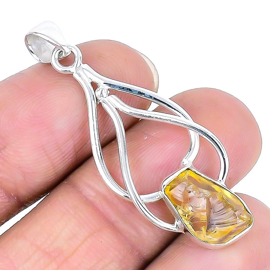 Citrine Druzy Gemstone Solid Silver Daughter Handcrafted Art Deco Trendy Pendant