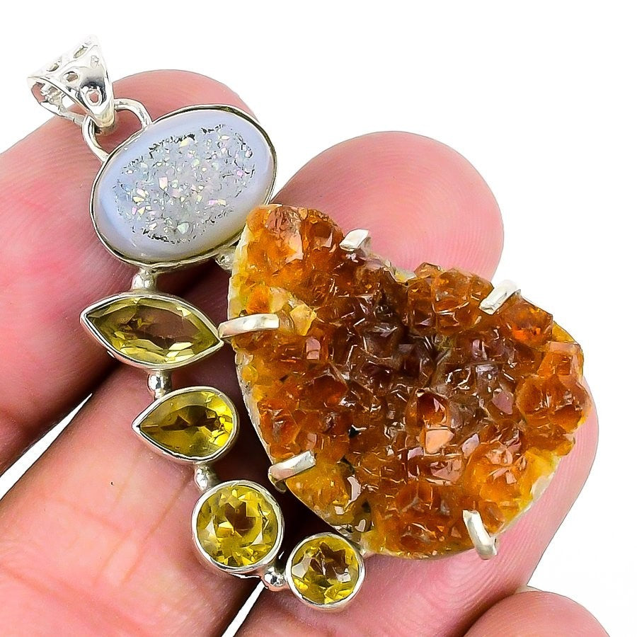 Citrine Druzy Gemstone Solid Silver Ethnic Unique Anniversary Pendant Jewelry