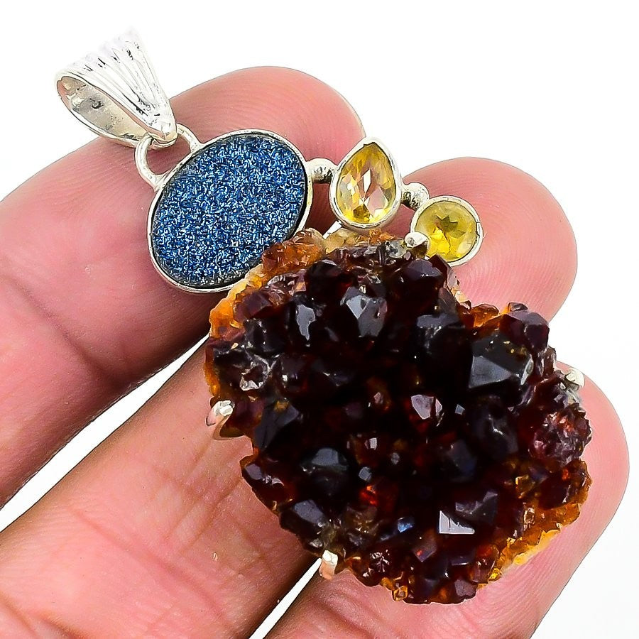 Citrine Druzy Stone Solid Silver Handmade Mother Daughters Day Pendant Jewelry