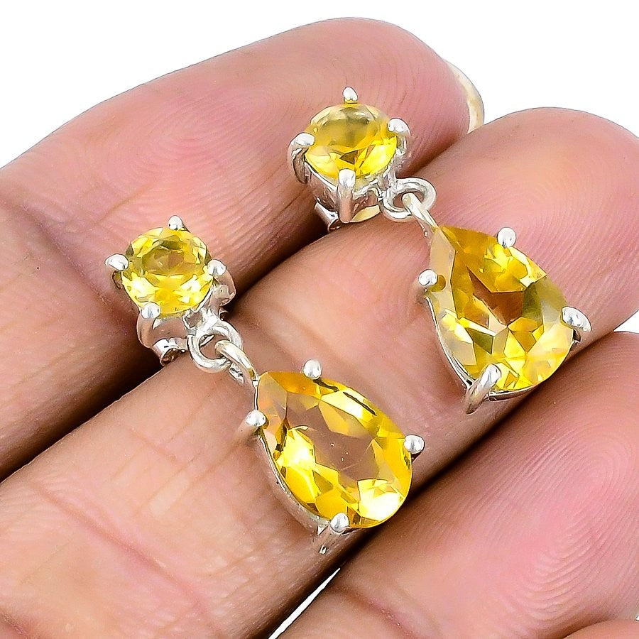 Citrine Faceted Gemstone Mother Daughters Day Dangle Drop Earrings 925 Silver