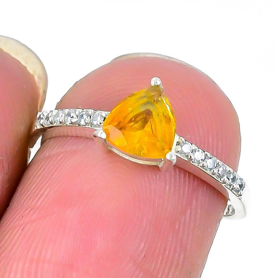 Citrine Faceted Gemstone Solid Sterling Silver Statement Artisan Ring Jewelry