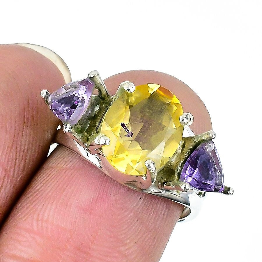 Citrine Faceted Stone November Statement Birthday Ring Jewelry 925 Solid Silver