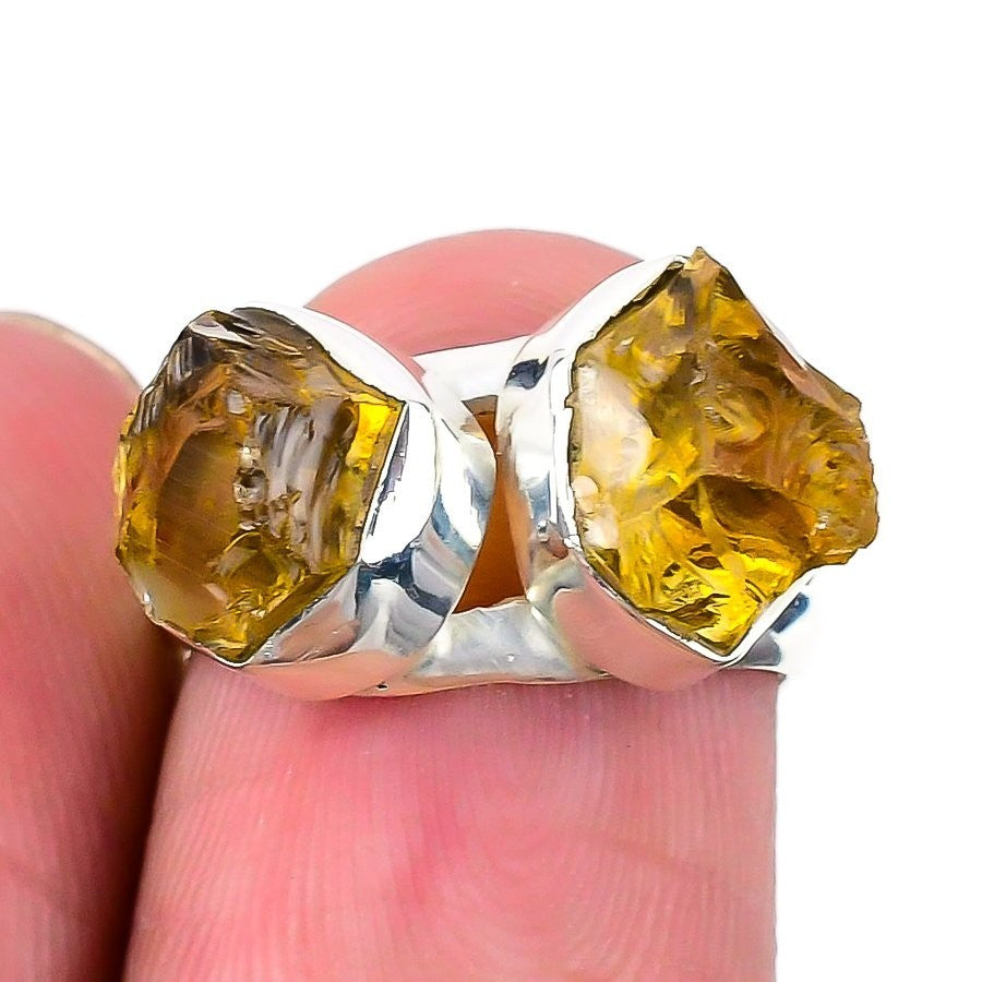 Citrine Gemstone 925 Sterling Silver Art Deco Statement Ring Jewelry Size 5.5