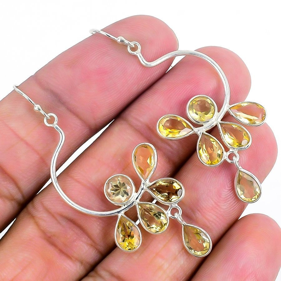 Citrine Gemstone November Dangling Daughter Sisters Gift Earrings Solid Silver