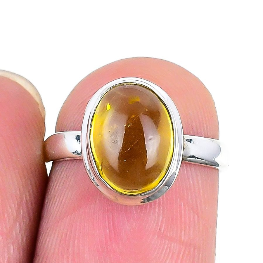 Citrine Gemstone Solid Silver Bezel November Birth Wife Statement Ring Size 5.5