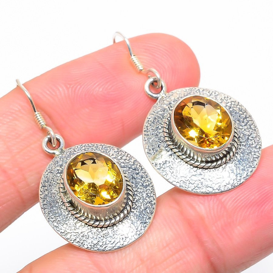 Elegant Citrine Stone 925 Sterling Silver Engagement Dangle