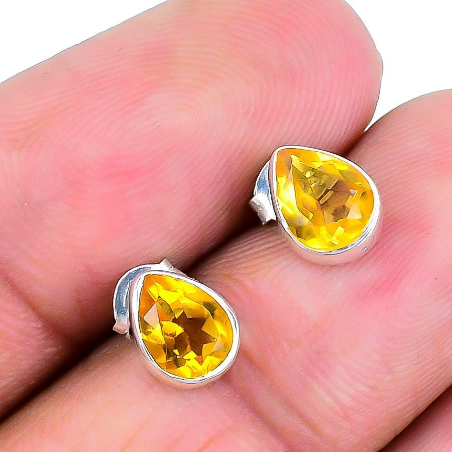 Elegant Citrine Stone 925 Sterling Silver Stud Post in 925 S