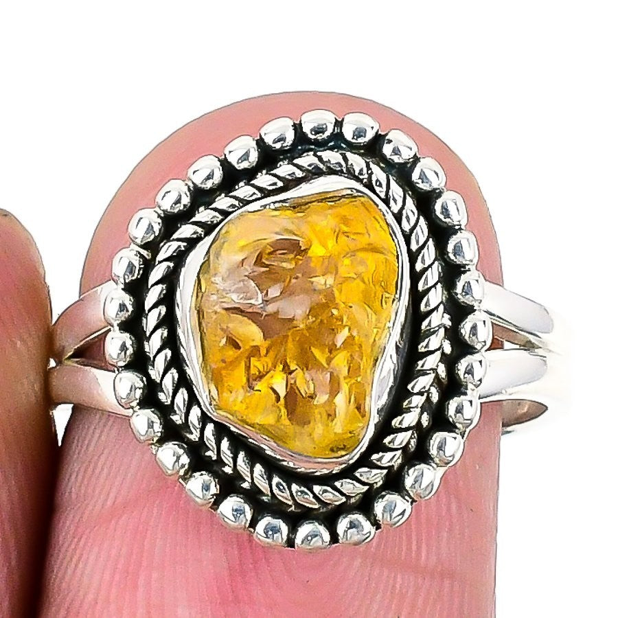 Citrine Stone Birthday Statement Daughter Ring Jewelry Sterling Silver US 7.5