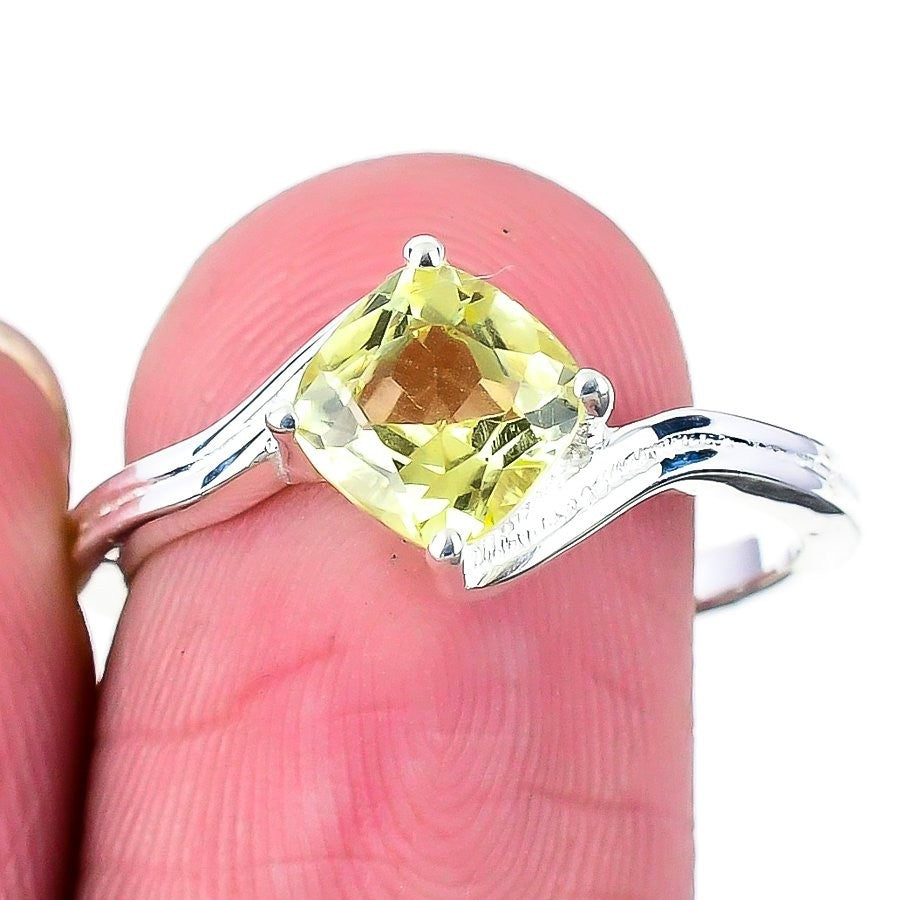 Citrine Stone Engagement Daughter Cluster Friend Gift Ring Size 9 Solid Silver