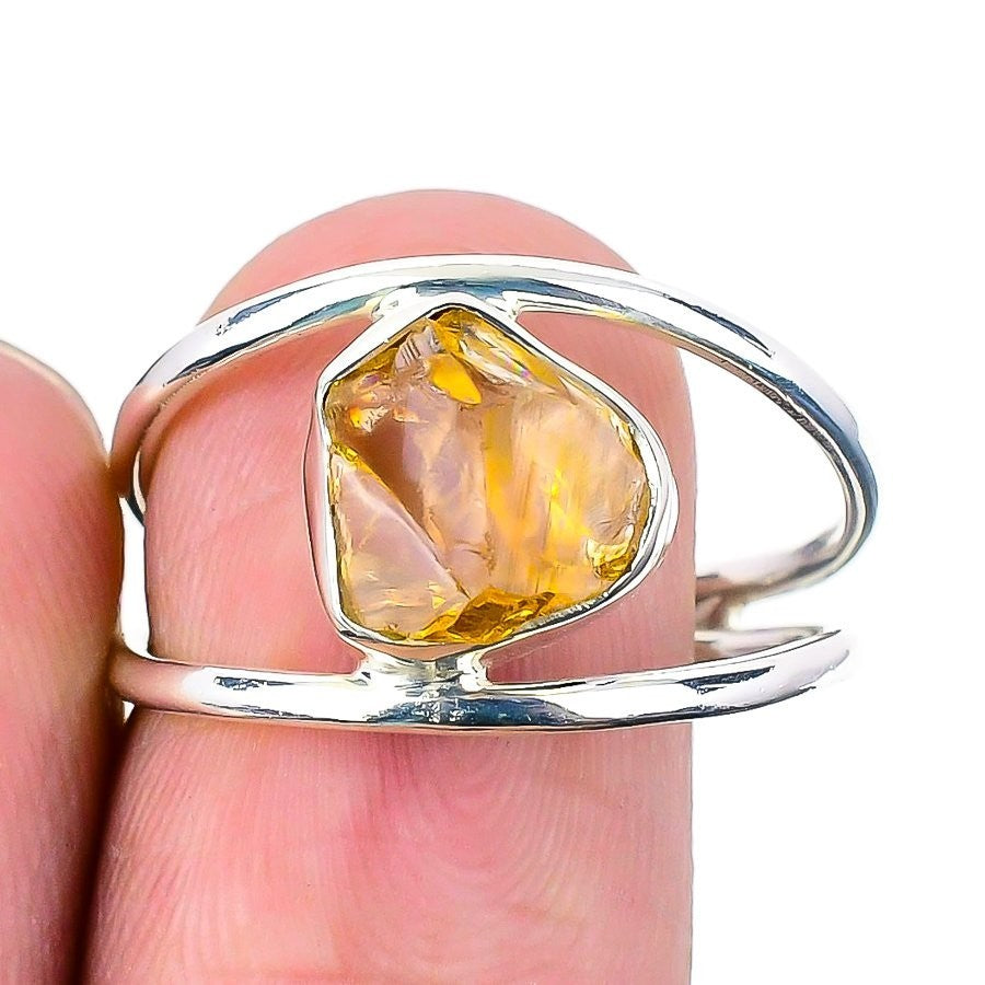Citrine Stone Mother Birthday Statement Boho Ring Jewelry Sterling Silver US 9.5