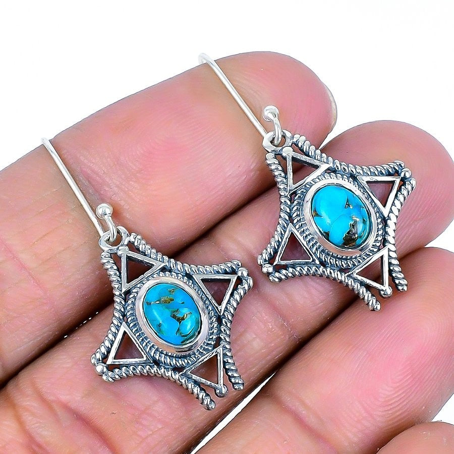 Copper Blue Turquoise Stone 925 Silver Ethnic Dangling Birthday Earrings Jewelry