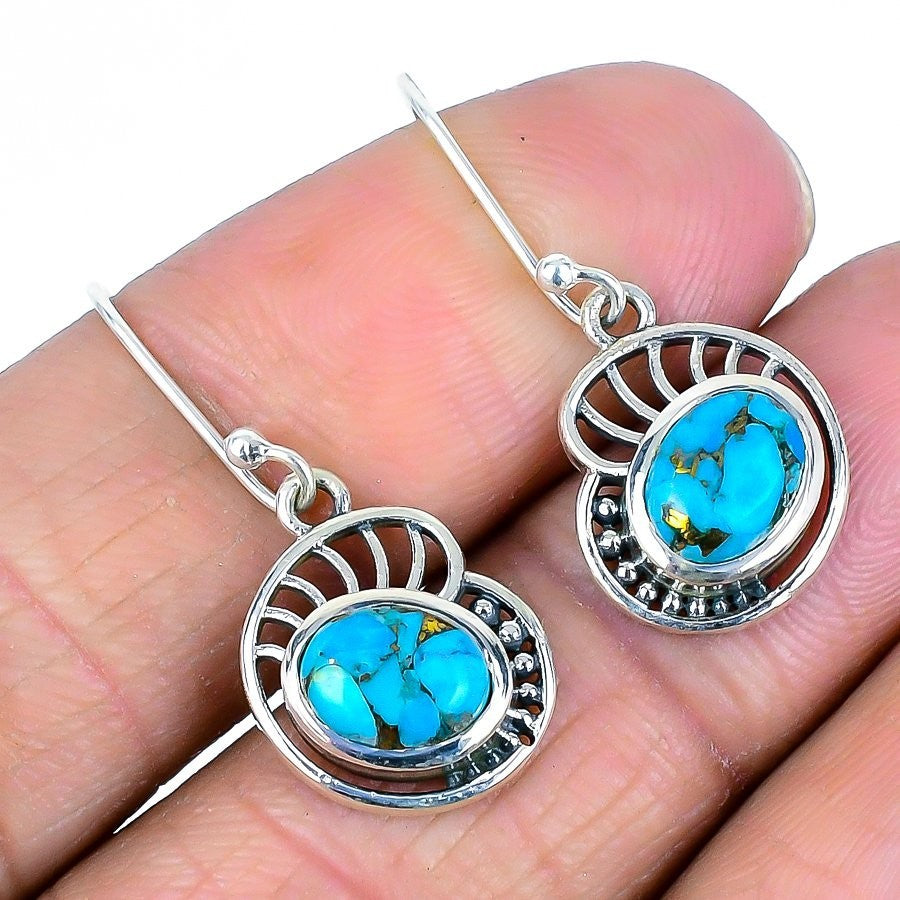 Copper Blue Turquoise Stone 925 Solid Silver Dangle Drop Sister Earrings Jewelry