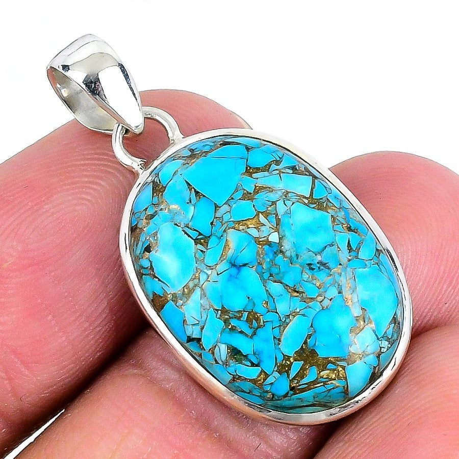 Copper Blue Turquoise Stone 925 Sterling Silver December Birth Pendant Jewelry