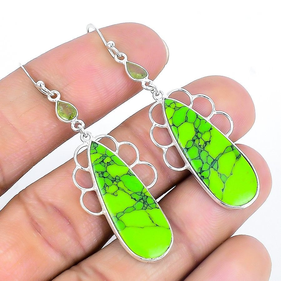 Copper Green Turquoise Gemstone Solid Silver Daughter Boho Drop Dangle Earrings