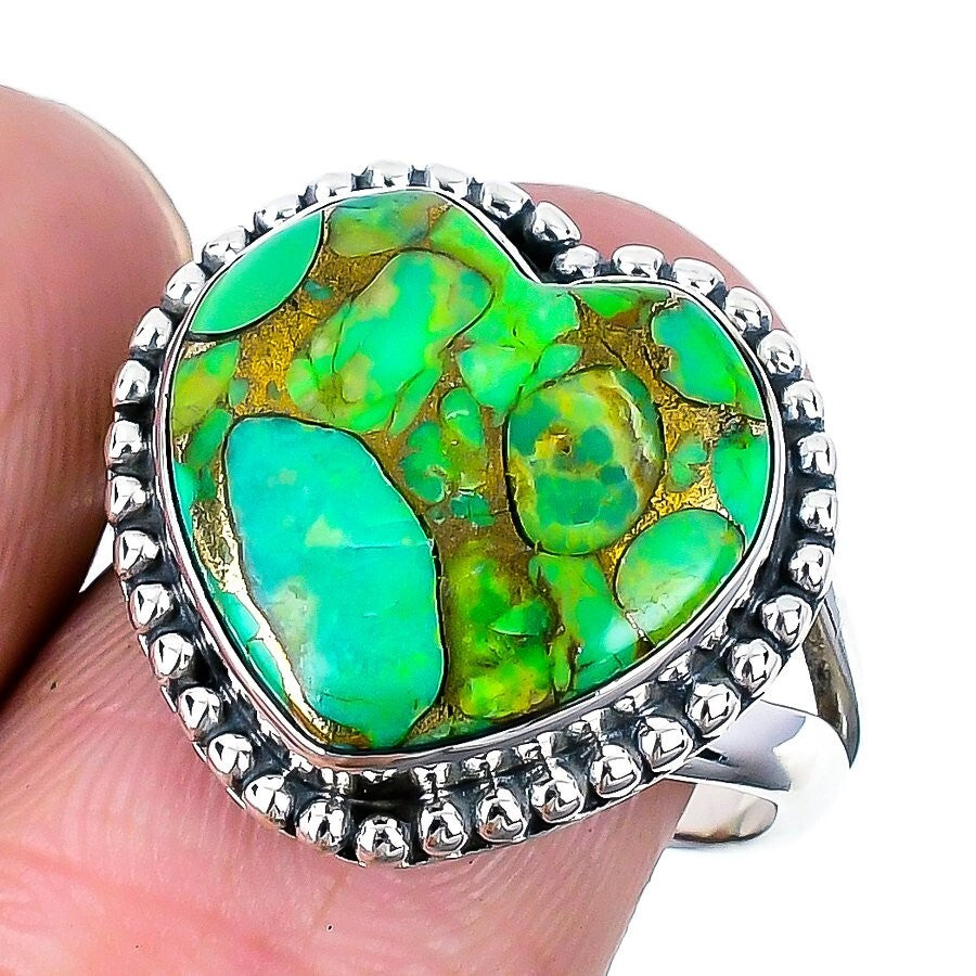 Copper Green Turquoise Gemstone Sterling Silver Statement Ring Jewelry Size 8