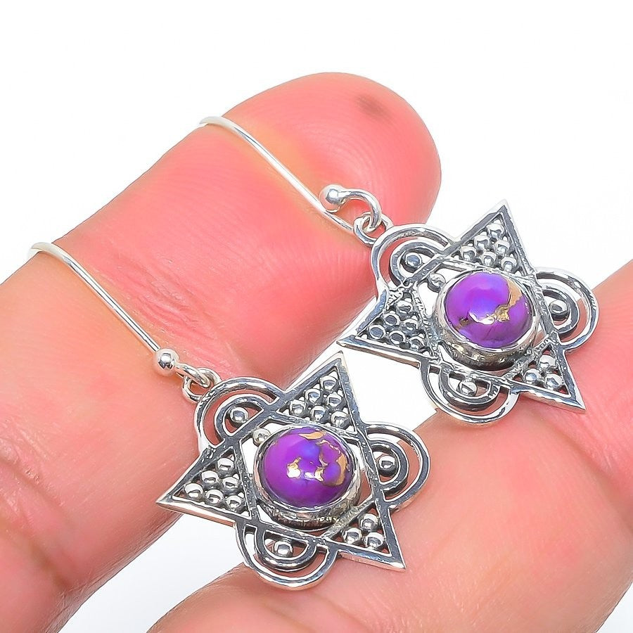 Copper Purple Turquoise Gemstone Solid Sterling Silver Drop Dangle Hook Earrings