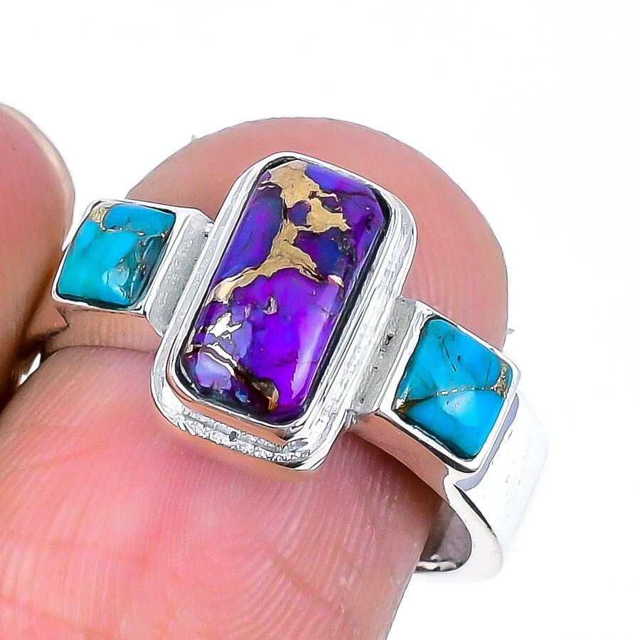Copper Purple Turquoise Gemstone Statement Ring Jewelry 925 Sterling Silver US 8