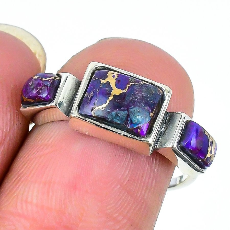 Copper Purple Turquoise Gemstone Statement Ring Jewelry Solid Sterling Silver