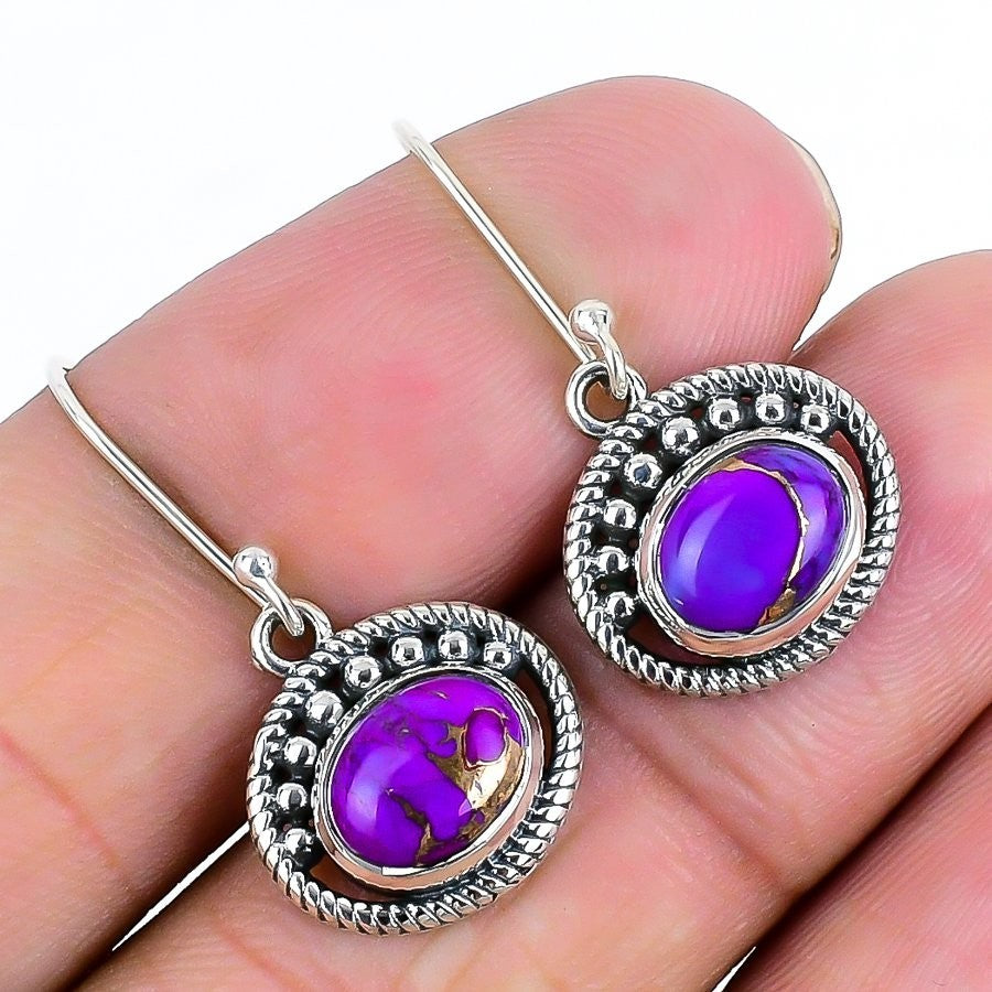 Copper Purple Turquoise Stone Solid Silver Dangle Drop Wedding Earrings Jewelry