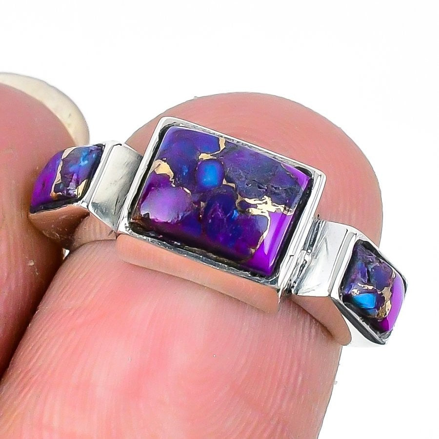 Copper Purple Turquoise Stone Wedding Trendy Statement Ring 925 Sterling Silver