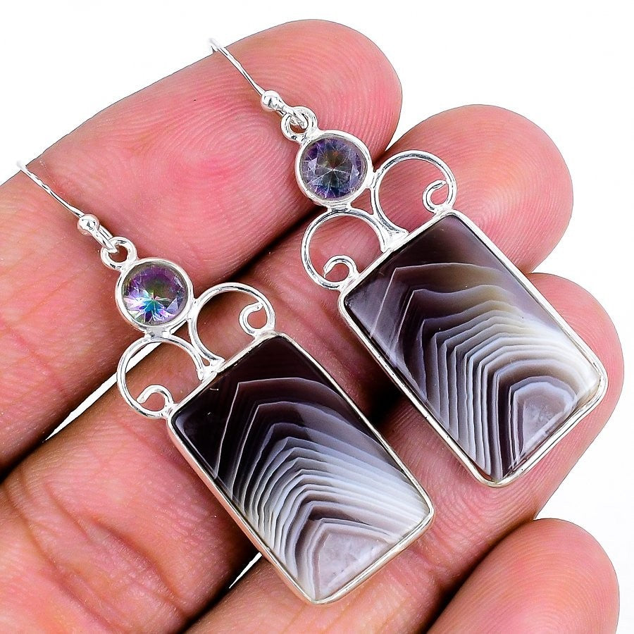 Crazy Lace Agate Gemstone 925 Solid Silver Sister Hook Dangling Earrings Jewelry
