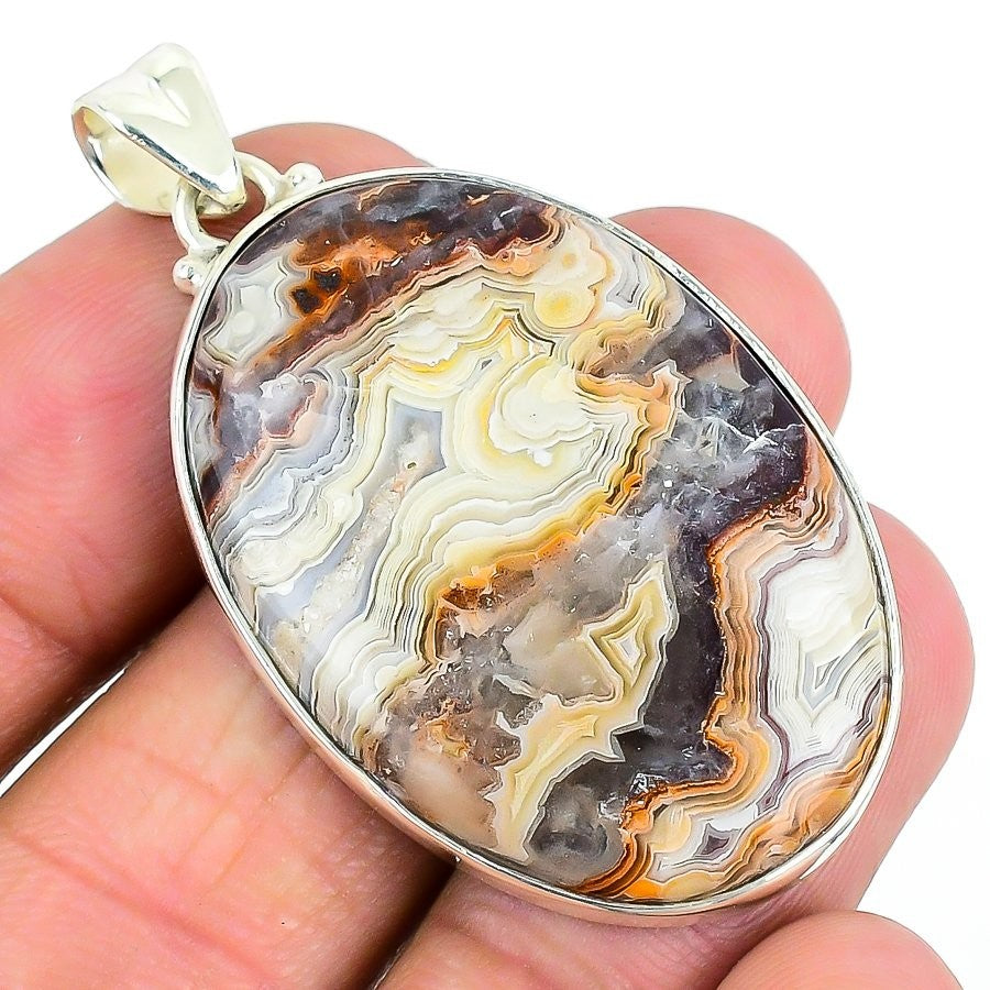 Crazy Lace Agate Gemstone Daughters Day Anniversary Pendant Jewelry Solid Silver
