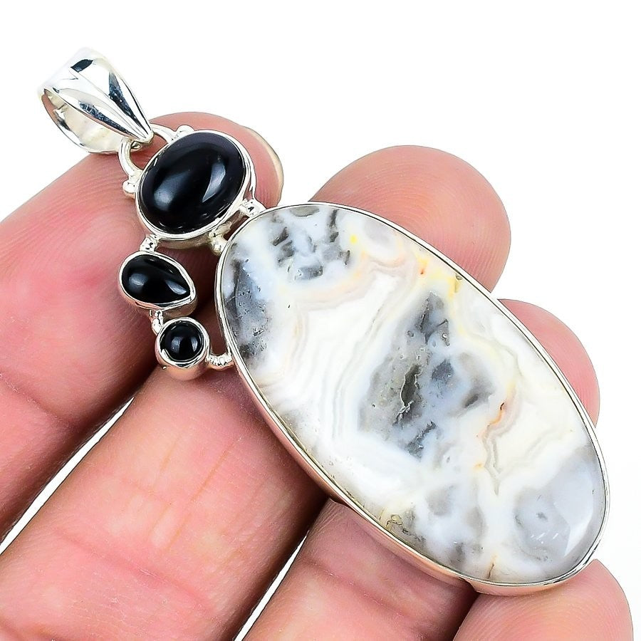 Crazy Lace Agate Gemstone Daughters Day Ethnic Wedding Pendant Sterling Silver