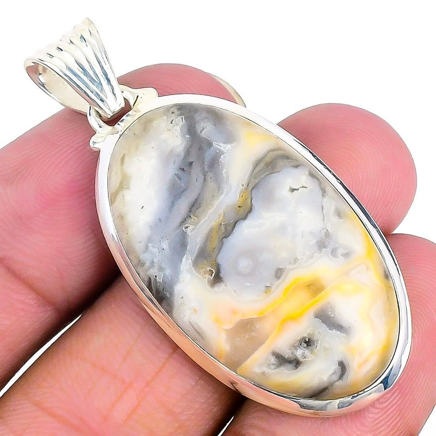 Crazy Lace Agate Stone 925 Sterling Silver Daughter Wedding Bezel New Pendant
